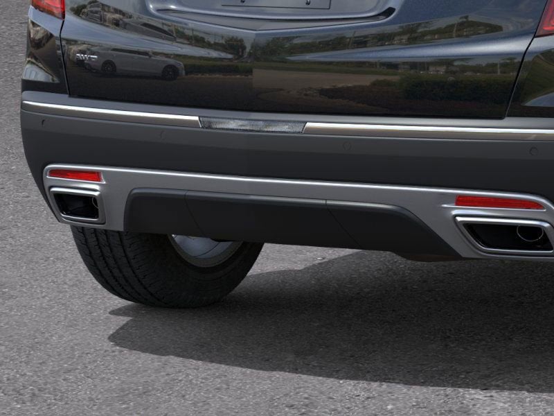 - Opens or closes when the system senses the key fob and the driver extends their foot under the left-hand side of the rear bumper over an image of the Cadillac Crest projected under the vehicle